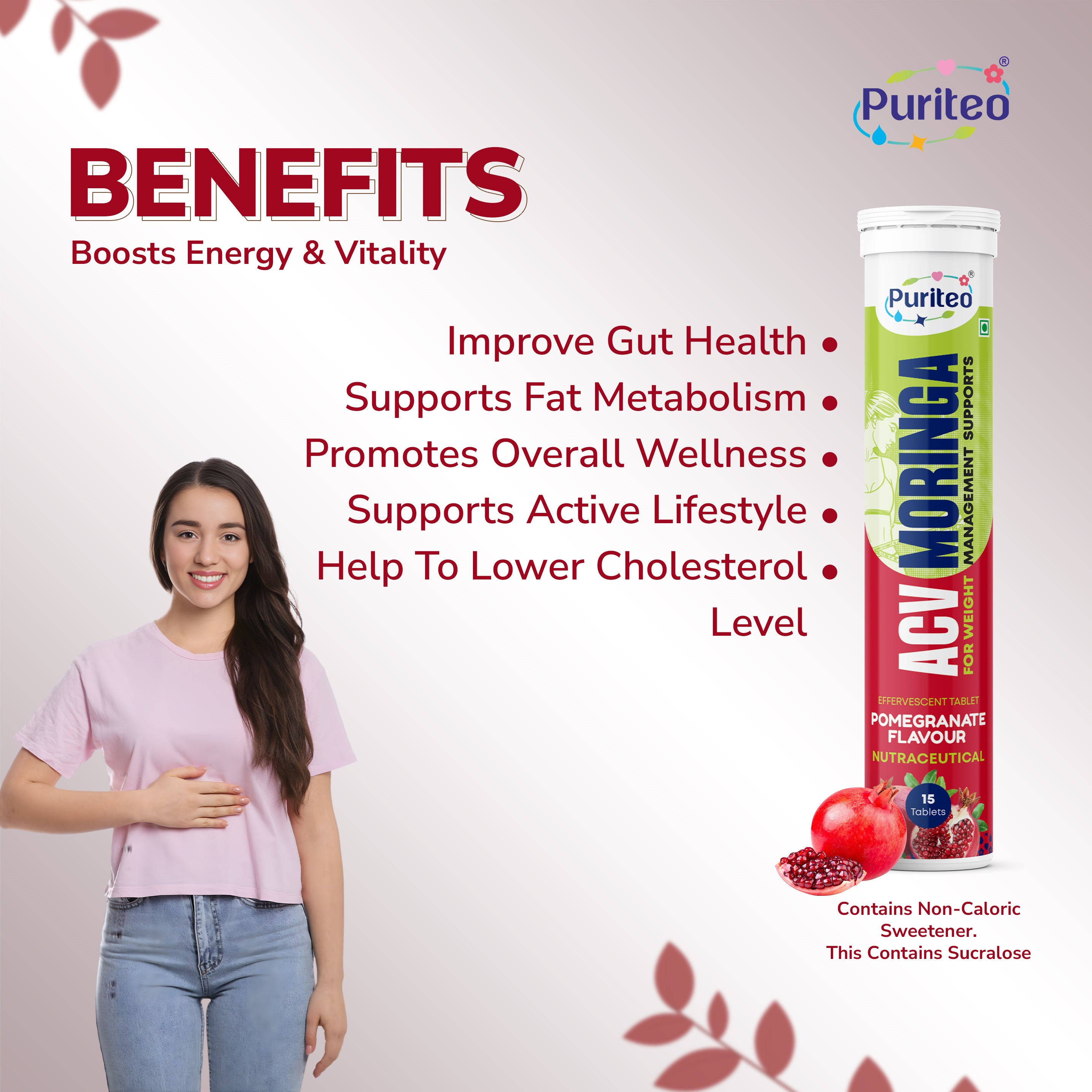 Refresh your wellness journey with Puriteo ACV + Moringa Effervescent Tablets — a tangy, revitalizing blend that supports detox, metabolism, and daily energy, minus the harsh taste of liquid ACV.