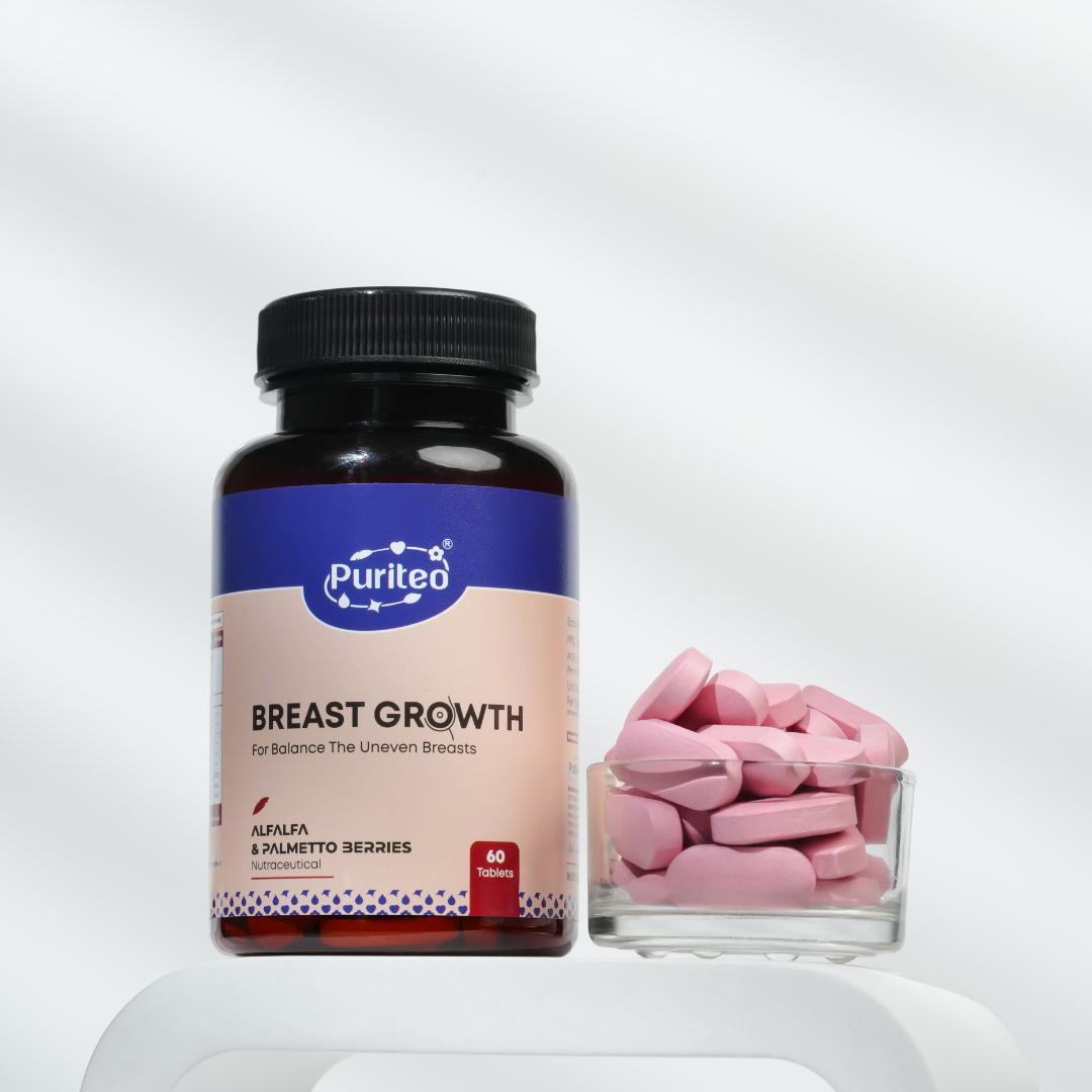 Experience natural enhancement with puriteo supplements! Crafted with Alfalfa & Palmetto Berry, these tablets help support firmness and overall breast health.