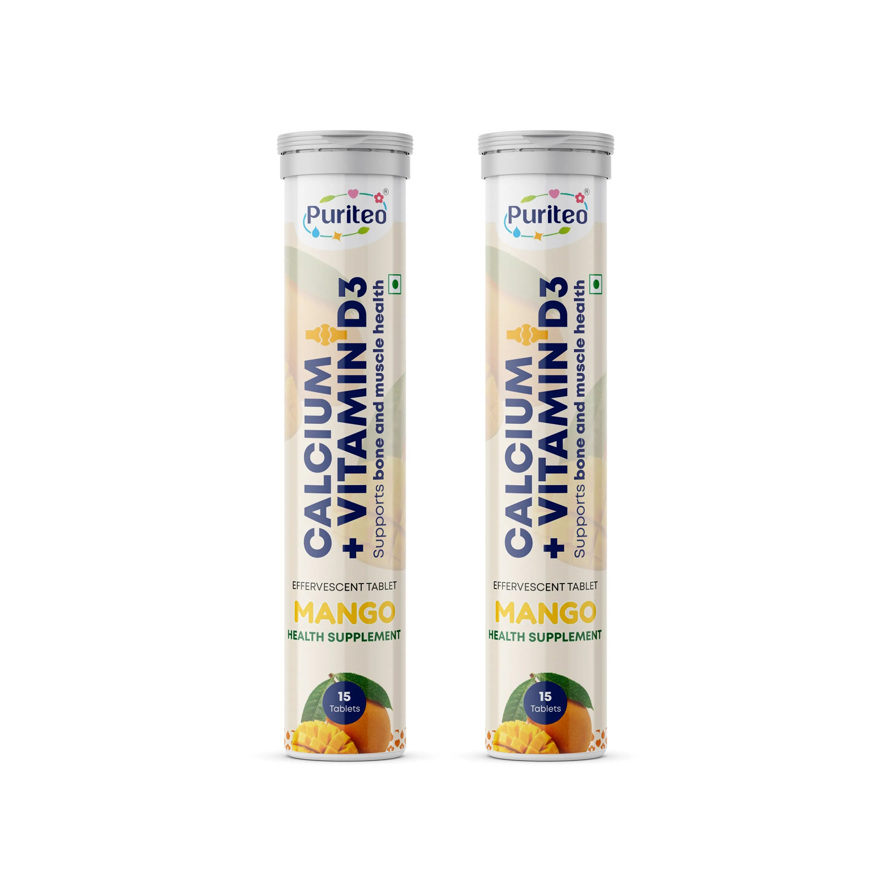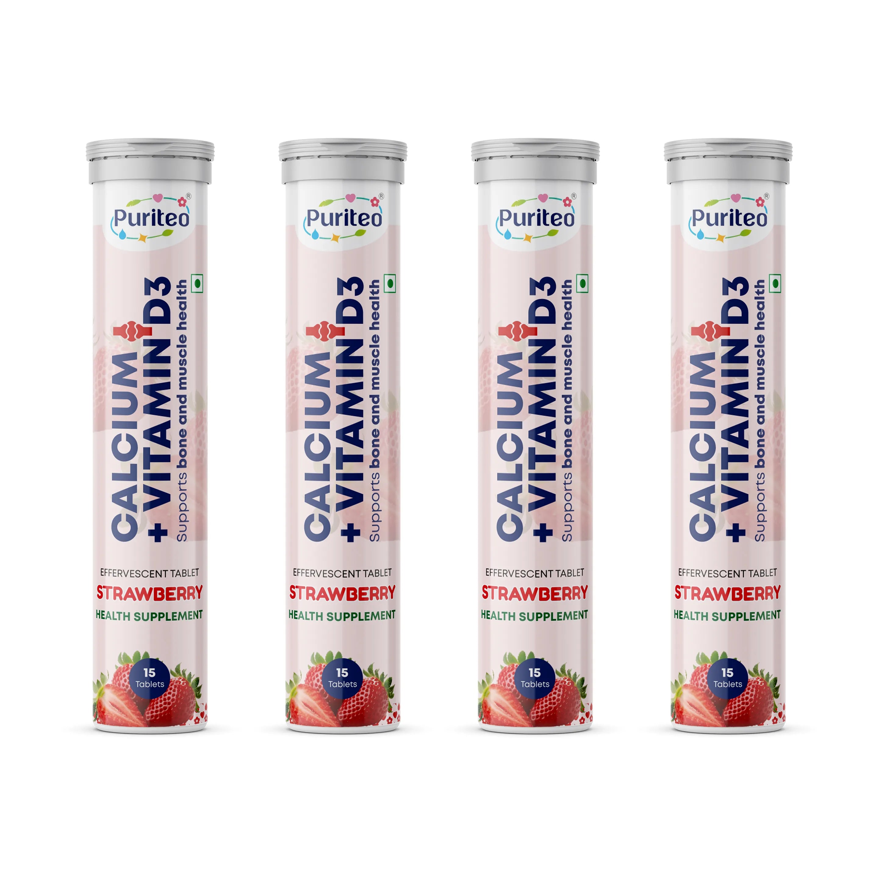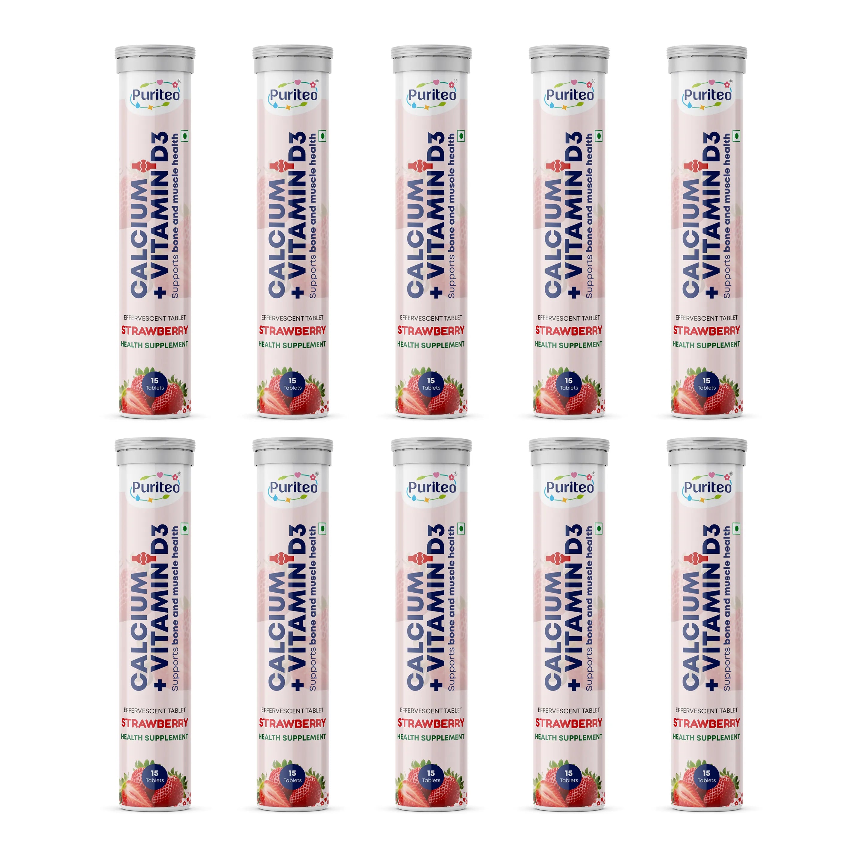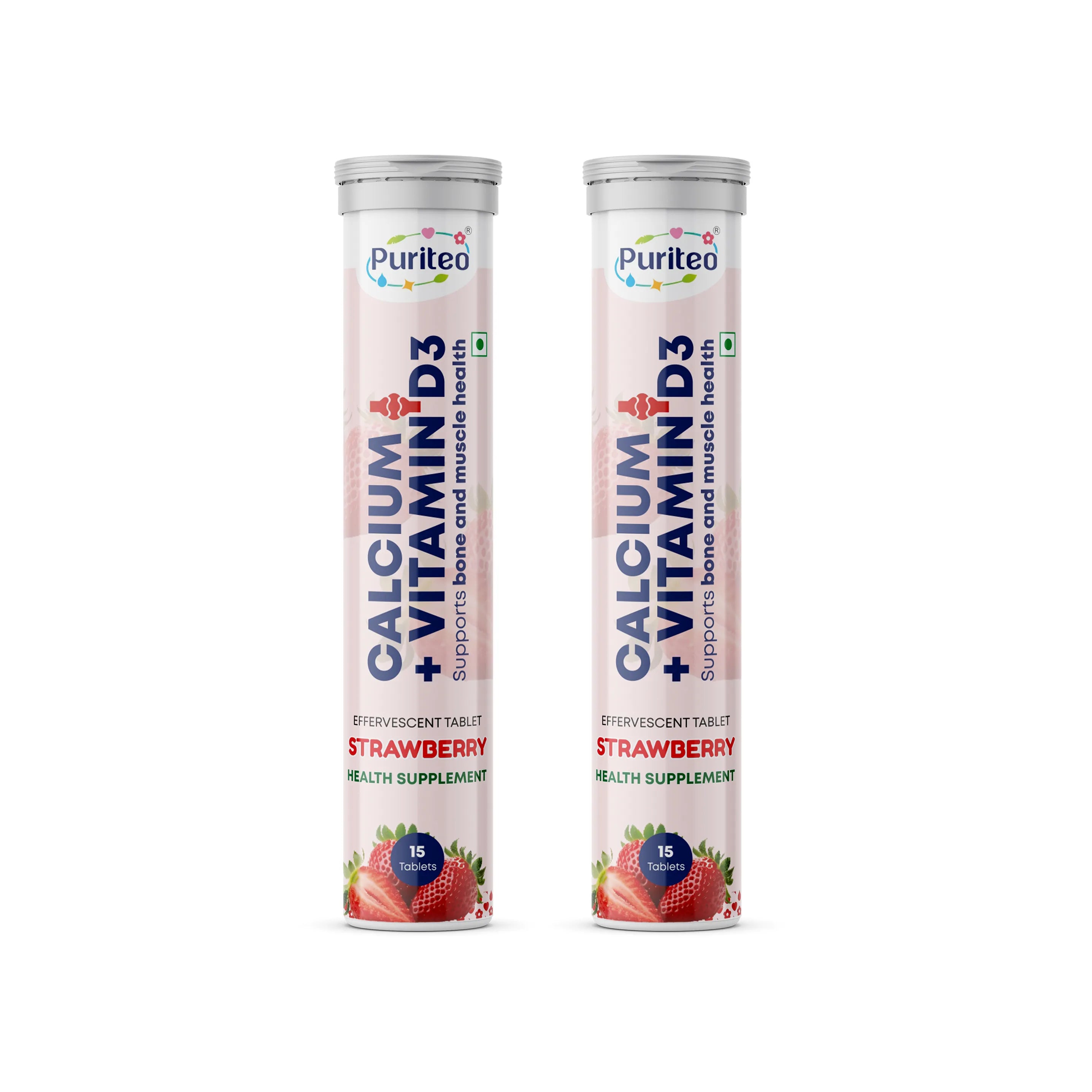 Puriteo Calcium + Vitamin D3 Effervescent Tablets are specially formulated to support strong bones, healthy joints, and optimal muscle function. Calcium helps strengthen bones and teeth, while Vitamin D3 supports better calcium absorption and bone mineral density, making it essential for growing individuals, adults, seniors, women’s health, and active lifestyles. The vitamin D3 calcium tablets dissolves quickly into a delicious drink, supporting better absorption and convenient intake without swallowing difficulty or discomfort. Ideal for individuals with low calcium intake, bone weakness, muscle cramps, lifestyle stress, aging concerns, or daily wellness support, it helps keep you strong, active, and confident in your movements.