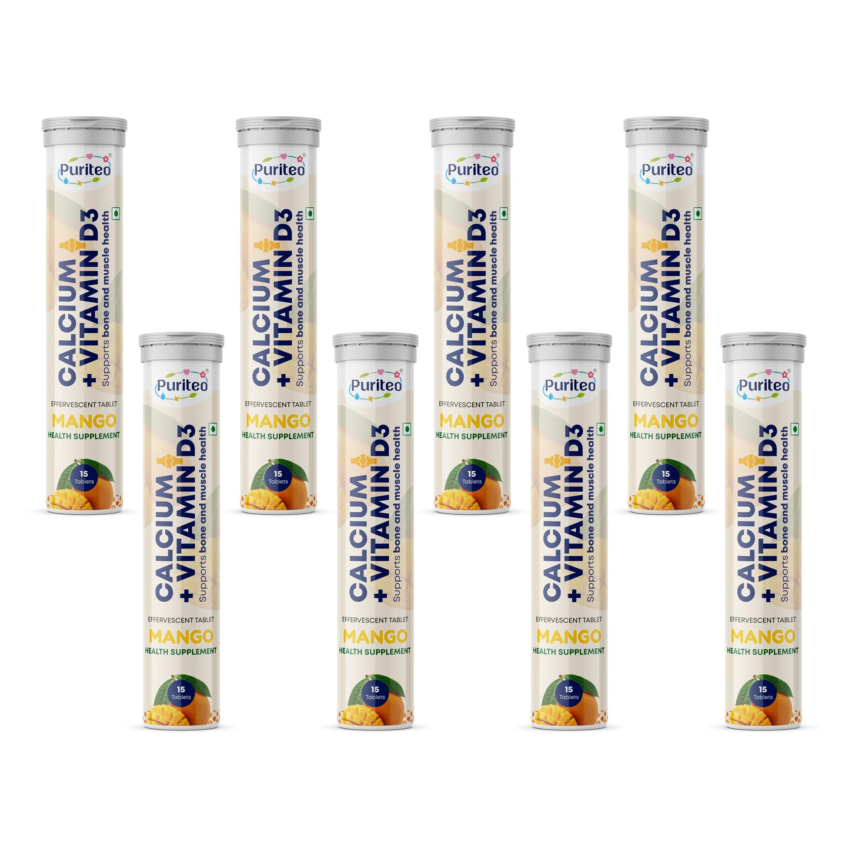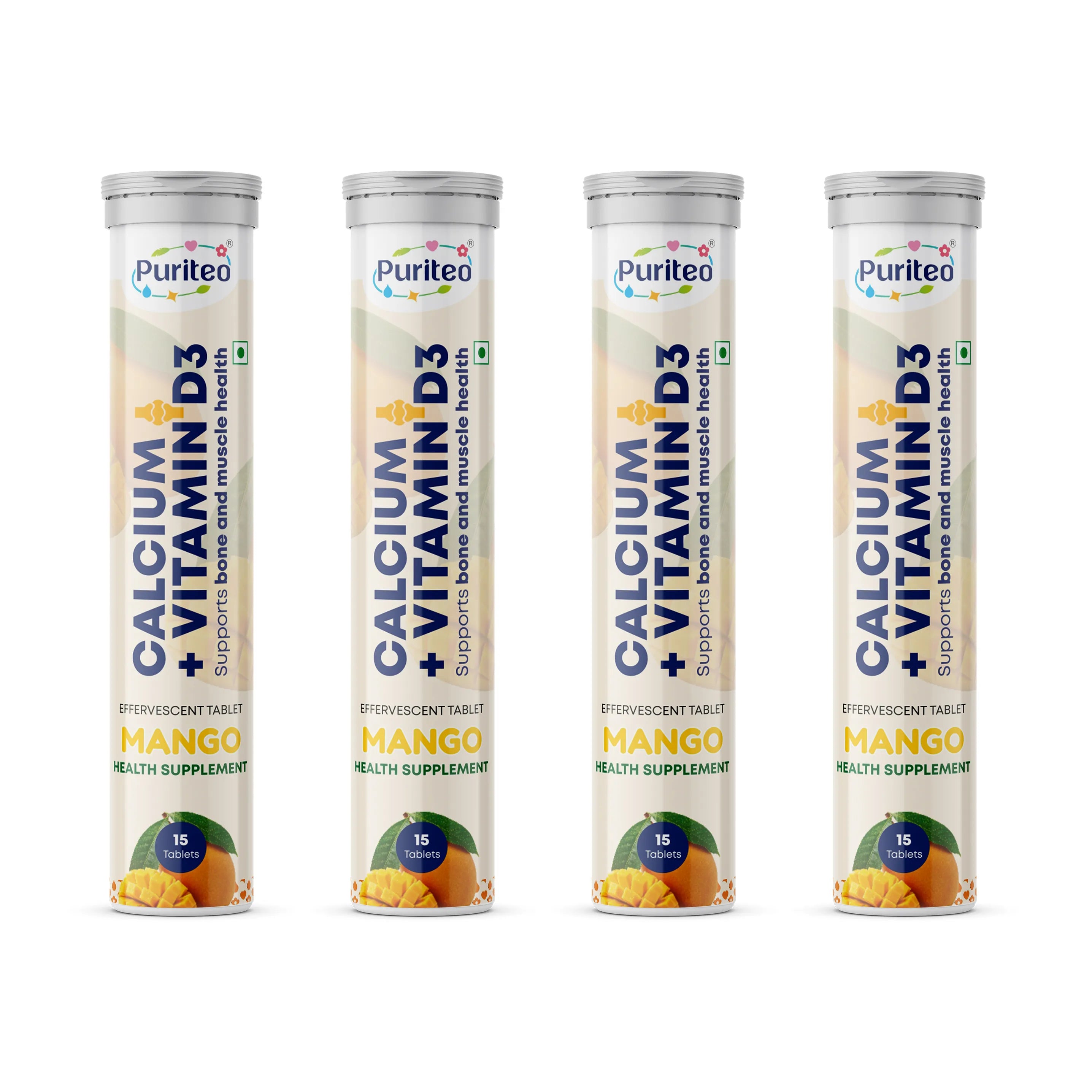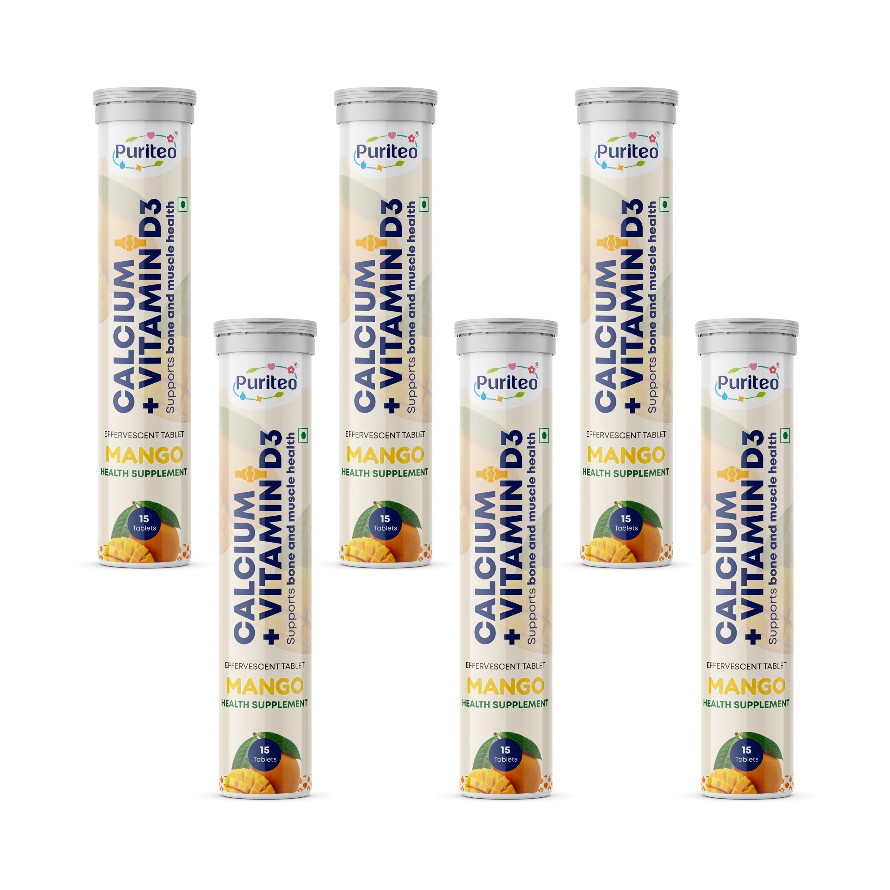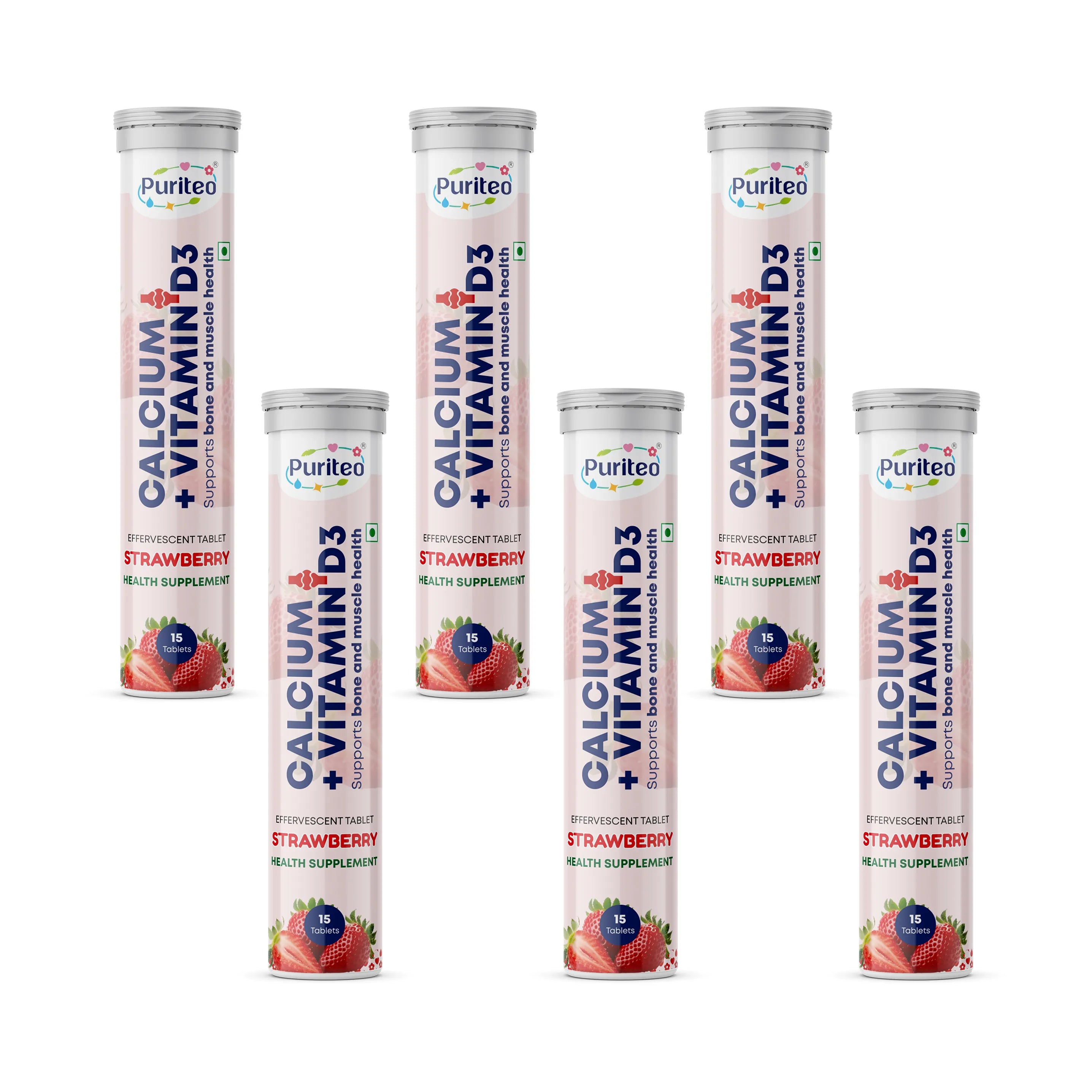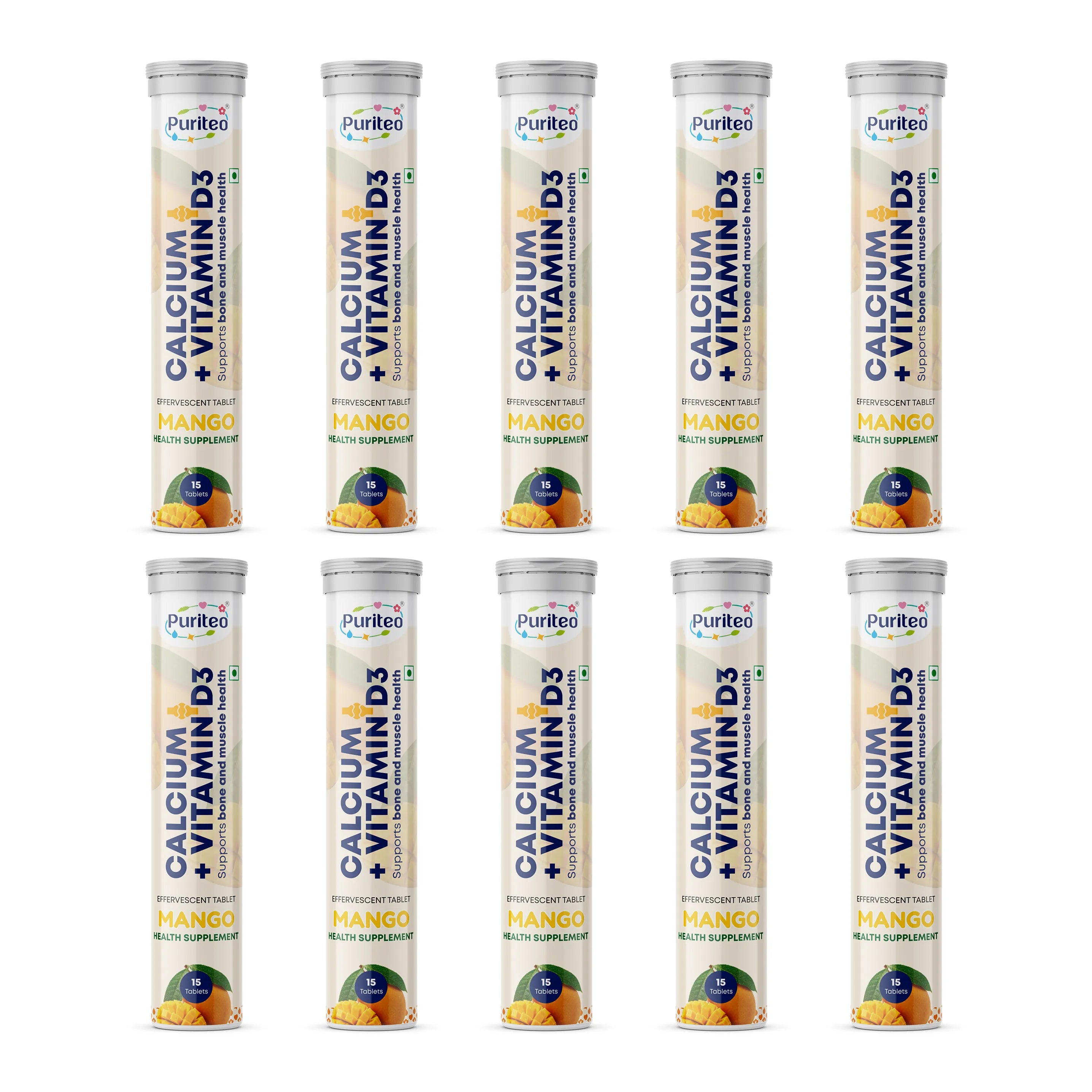 Puriteo Calcium + Vitamin D3 Effervescent Tablets are specially formulated to support strong bones, healthy joints, and optimal muscle function. Calcium helps strengthen bones and teeth, while Vitamin D3 supports better calcium absorption and bone mineral density, making it essential for growing individuals, adults, seniors, women’s health, and active lifestyles. The vitamin D3 calcium tablets dissolves quickly into a delicious drink, supporting better absorption and convenient intake without swallowing difficulty or discomfort. Ideal for individuals with low calcium intake, bone weakness, muscle cramps, lifestyle stress, aging concerns, or daily wellness support, it helps keep you strong, active, and confident in your movements.
