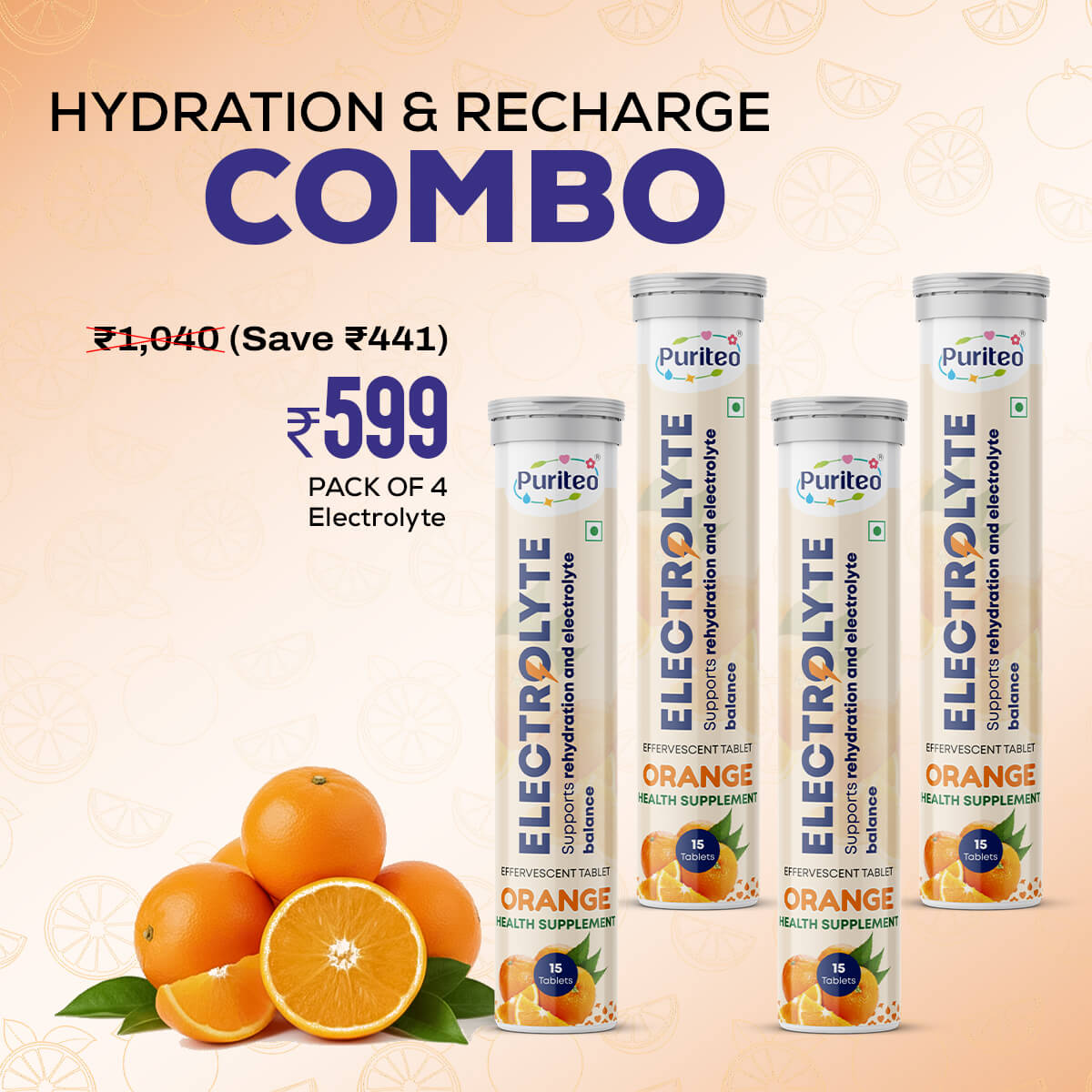 Stay hydrated and recharge with Puriteo Electrolyte Effervescent combo. This pack of 4 helps replenish electrolytes lost through sweat. This effervescent supports stamina, muscle function, and energy. Each Puriteo Electrolyte Effervescent Tablet dissolves quickly in water. It makes a drink that keeps you feeling active. These tablets are perfect for workouts or travel. Use them for activities or busy schedules. They are an alternative to sugary sports drinks. Just drop a Puriteo Electrolyte Effervescent Tablet into water and enjoy. Get hydration support with Puriteo Electrolyte Effervescent Tablets.