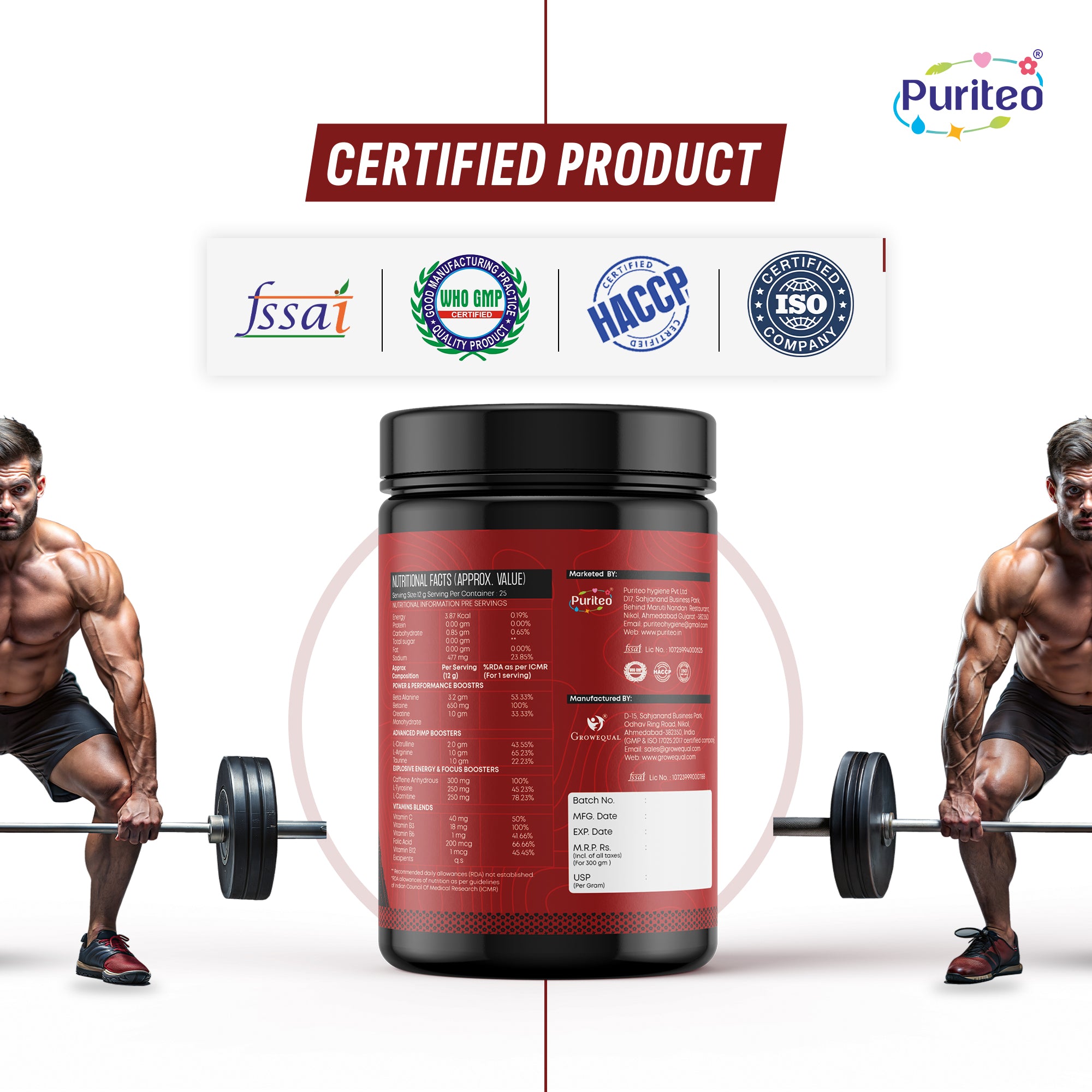 Fuel your energy, endurance, and performance — naturally with Puriteo Pre-Workout.